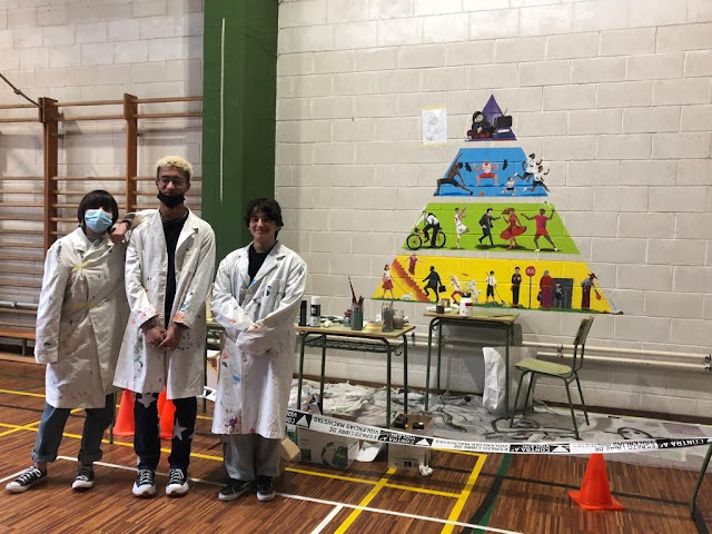 Temos un novo mural no ximnasio, elaborado polos alumnos de Debuxo Artístico de 1º de Bacharelato, Cristopher, Leo e Lucía, coa profesora María Álvarez.
